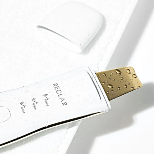 - Professional complete skin care. Ultrasound peeling removes sebum and old cells from your skin and deeply cleans it. Booster peeling mode for cleaning problematics area and T-zone. Galvanisation helps the skin deeply absorb your cosmetics and maximise its effects. Light volume of LED Therapy increase by 40%. The blue light heals acne and stops new acne from forming. It also heals small wounds and scars. The red light activates collagen, reduces wrinkles and stains, and helps regenerate the skin. Increased resistance of the 24k gold blade is anti-bacterial, supports good blood circulation, removes toxins and improves the effects of the peeler. Double extended battery life including battery status indicator.