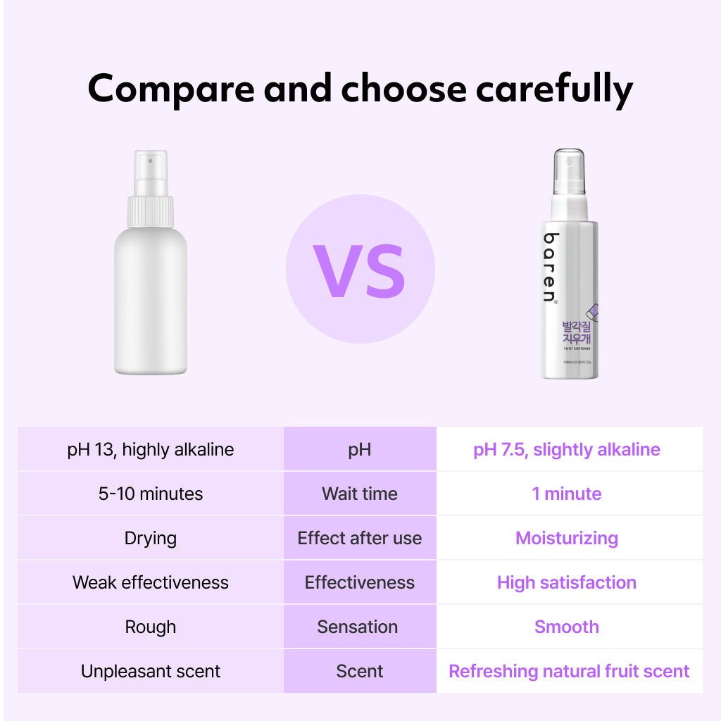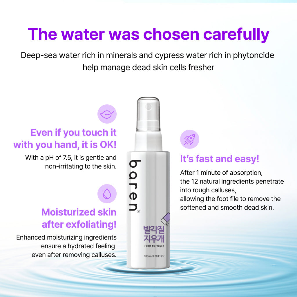 The Baren Foot Softener Spray is your go-to solution for effortless foot care at home. This innovative spray simplifies callus removal with its quick-absorbing formula enriched with 12 natural ingredients. Designed for convenience and effectiveness, it transforms rough, callused feet into smooth, moisturized skin in just minutes.