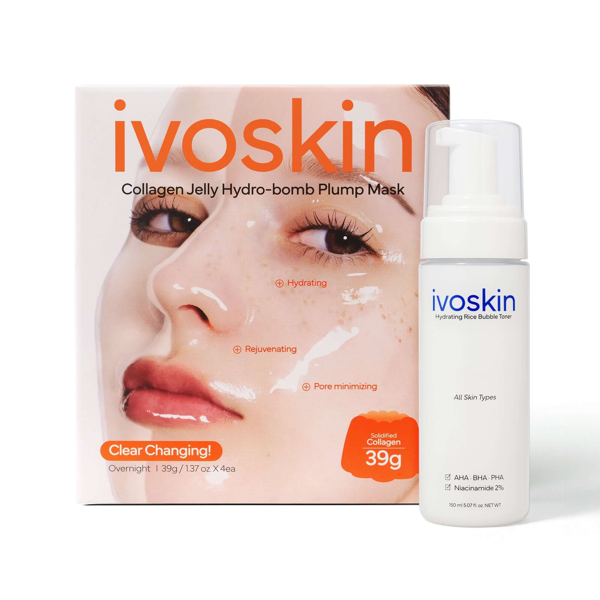 This duo combines a lightweight, foaming toner and an overnight collagen jelly mask to deliver deep hydration, gentle exfoliation, and visible radiance. Give your skin the boost with this advanced bundle.
