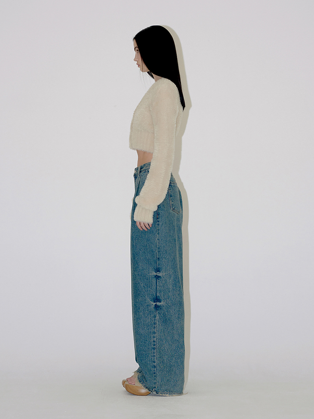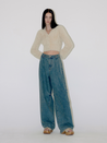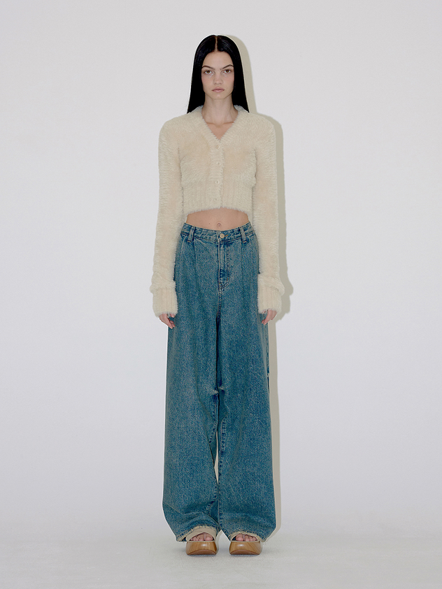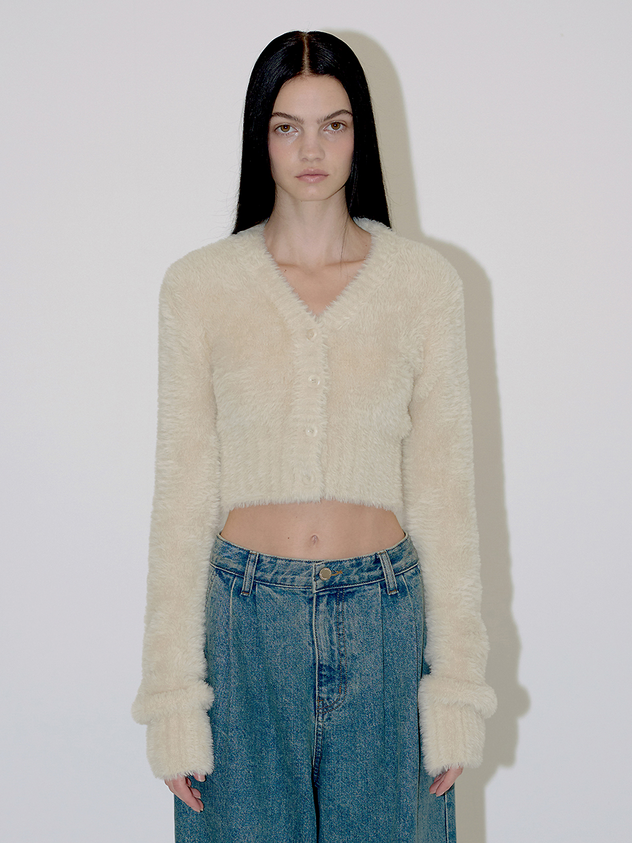 DIAGONAL V Neck Knit Cardigan _ Beige