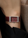 RUMTTON Leather Band Design Grid Watch [Burgundy Silver]