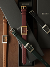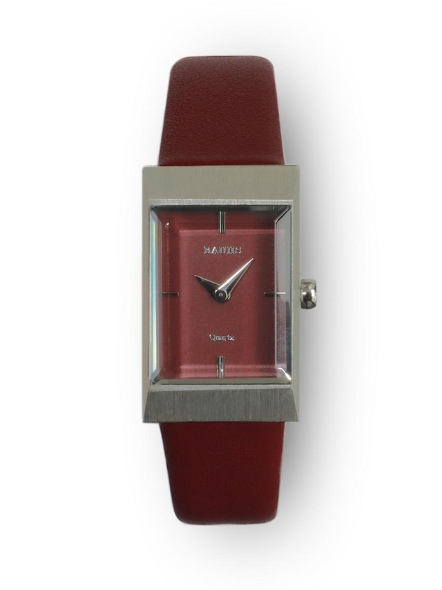 The Grid Collection by BAUS features a sophisticated burgundy leather watch inspired by German Bauhaus design, combining a precisely crafted alloy case with thick, jewel-cut mineral glass for enhanced visual appeal. The timepiece showcases a distinctive hairline finish that creates a vintage aesthetic, while the genuine top-grain leather band ensures both comfort and durability. The watch's thoughtful design elements, including its matte case finish and unified color scheme between dial and band, make it a versatile accessory suitable for everyday wear across all seasons.
