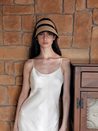 Elevate your everyday style with SHINJEO's One Mile Sun Visor in classic beige, offering superior UV50+ protection while maintaining effortless sophistication. This lightweight and flexible accessory features a convenient adjustable band (56-60cm) and comes with a thoughtful forehead pad to prevent makeup transfer, making it the perfect companion for quick outings or all-day wear. Whether paired with casual attire or elegant dresses, this premium paper-cellulose blend visor from the renowned New York-based designer hat brand adds a polished finish to any ensemble while providing practical sun protection.