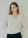 YUPPE Lace V Neck Cotton Cashmere Knit [Beige]