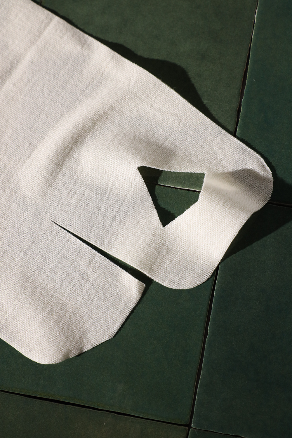 2. Gently stretch both ends of the upper half, labelled (A), and rest thoroughly over the philtrum and cheeks.