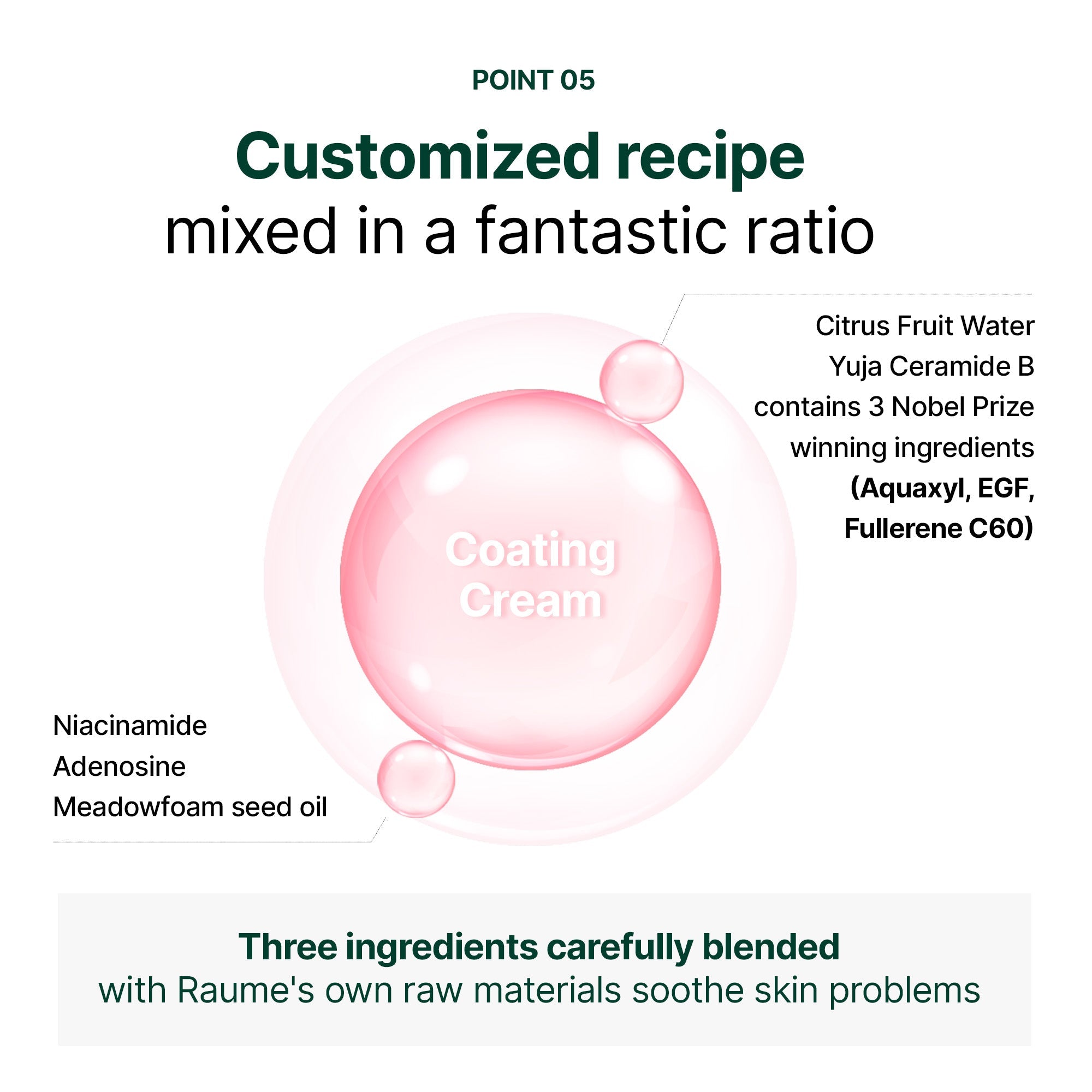 RAUME Cerafit Time Coating Cream is a high-purity K-Beauty moisturizer powered by the Natural Oil Capsule System, a micro-encapsulated technology that melts upon application to release nourishing oils and create a radiant, glass-like glow.