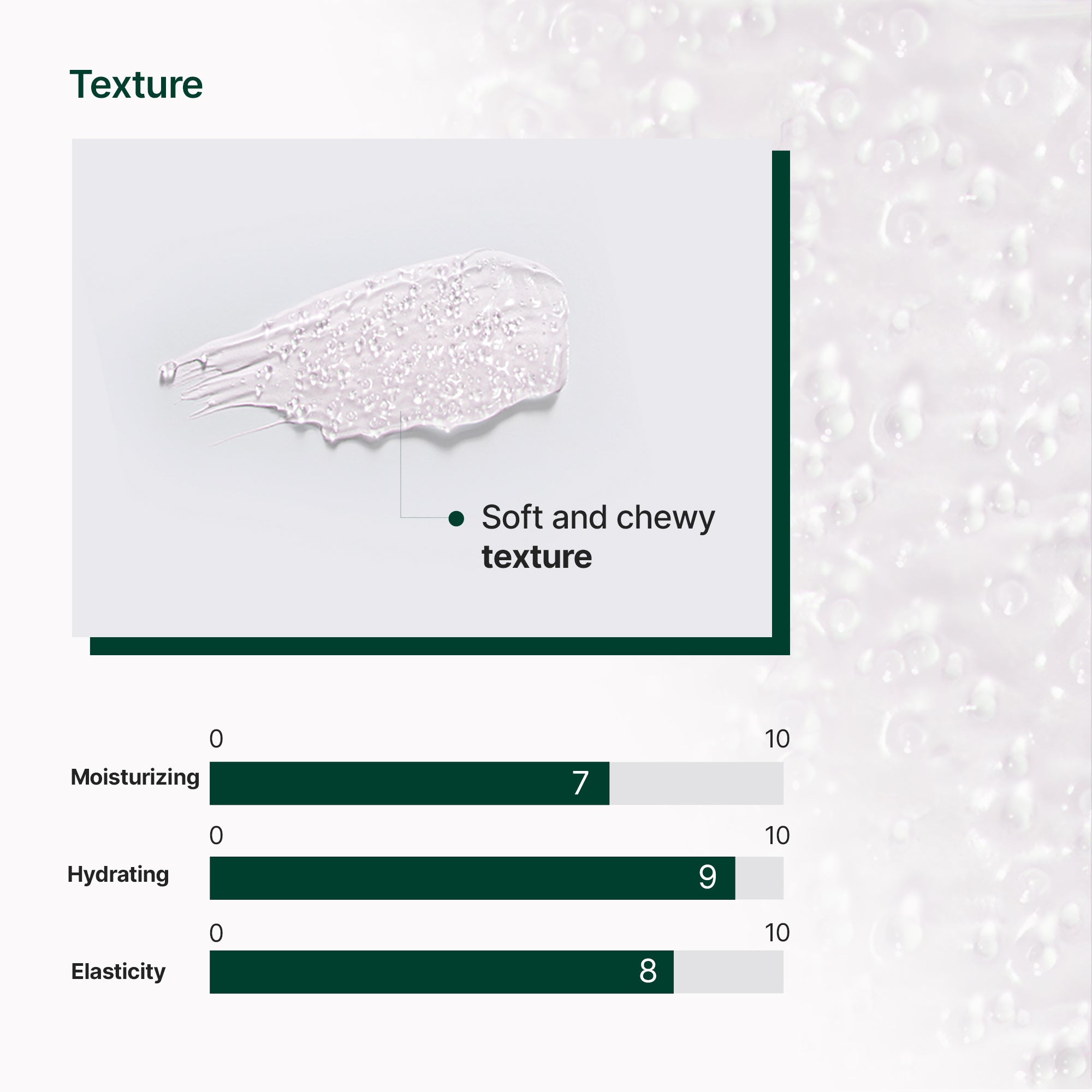 The novel Triple Complex™ (Aquaxyl™, Betaine, Sodium Hyaluronate) provides deep hydration while maintaining elasticity and softness.
