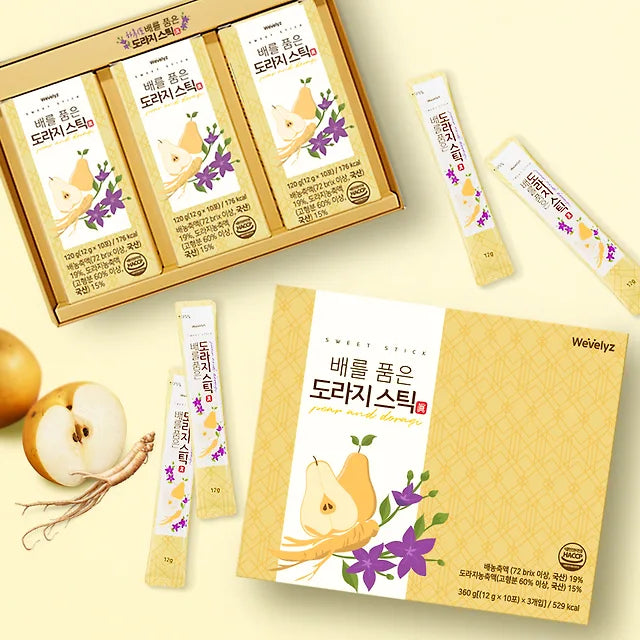 30 packs x 12g of Doraji Stick with pear Contains domestically produced doraji and pear!