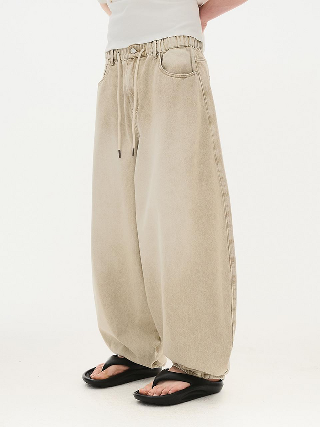 DEEP SENSE Washing Balloon Banding Denim (D657) [Beige]