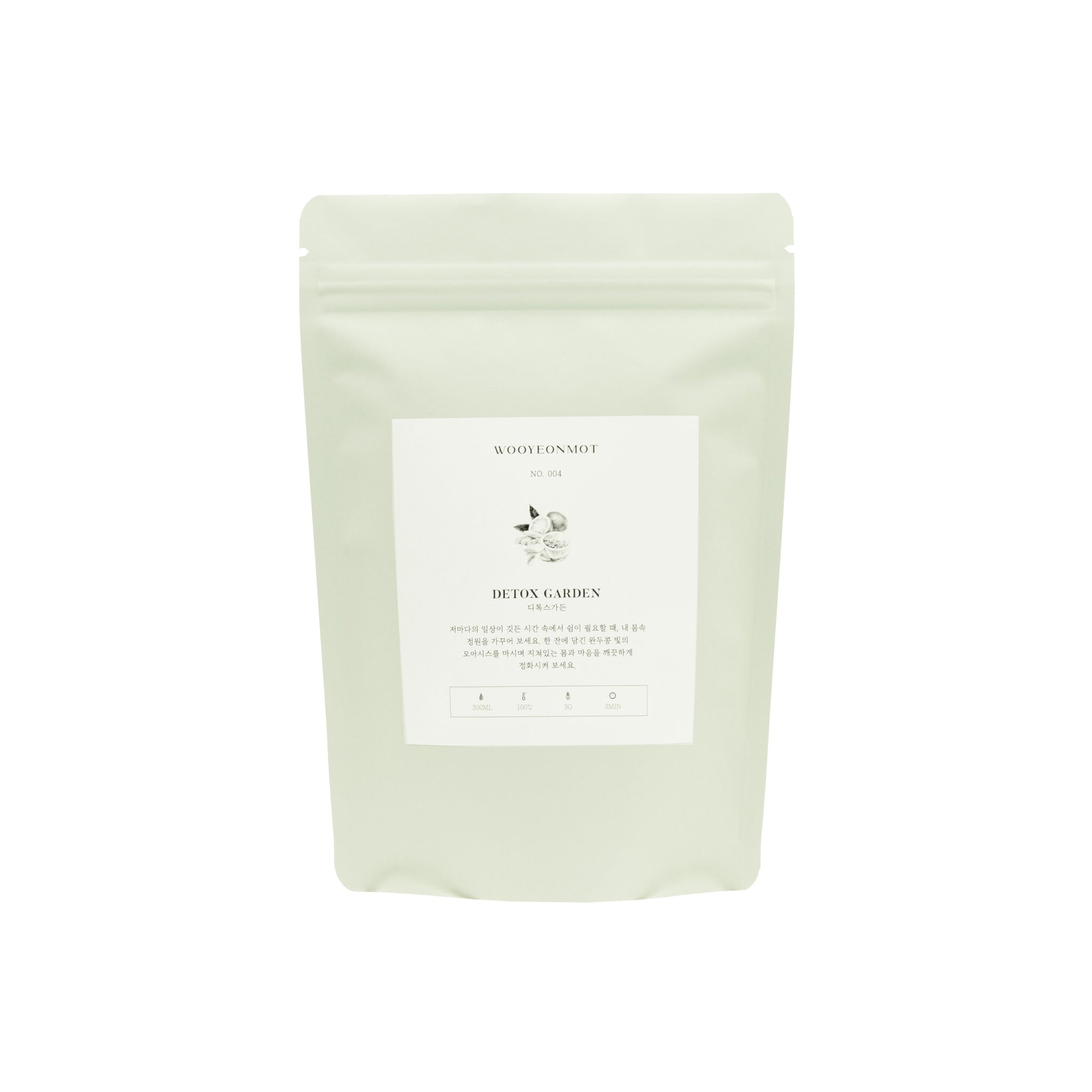 “When you need a break from the time filled with each of our daily lives, try cultivating a garden inside your body. You can feel the pea-colored water and the scent of grass leaves in the tea blended with Jeju green tea. Imagine a forest full of phytoncides and detoxify your tired body and mind with a cup of tea.