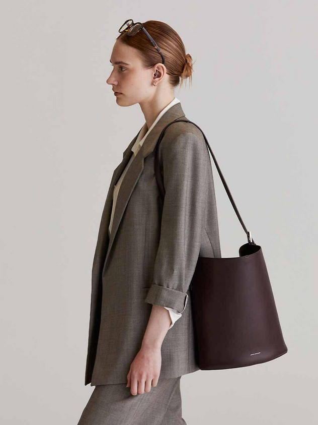 The RHODOS_L, available in sophisticated dark brown and black, is a testament to JAMIE WANDER's minimalist design philosophy crafted from 100% vegan leather. This spacious handbag, measuring W 27 × H 30 × D17 with an adjustable strap up to 97cm, perfectly balances functionality with elegant restraint. As part of JAMIE WANDER's 25SS Collection, this versatile piece embodies the brand's global perspective while bringing refined style to everyday wear.