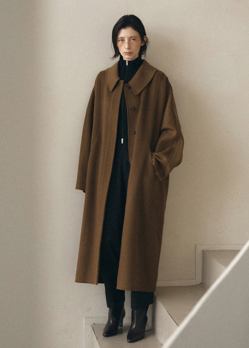 piece can be easily transitioned between formal and casual, paired with a turtleneck and wide pants for a minimalist look, over denim for a daily look, or with a knit dress or skirt. It exudes natural sophistication the moment you put it on.