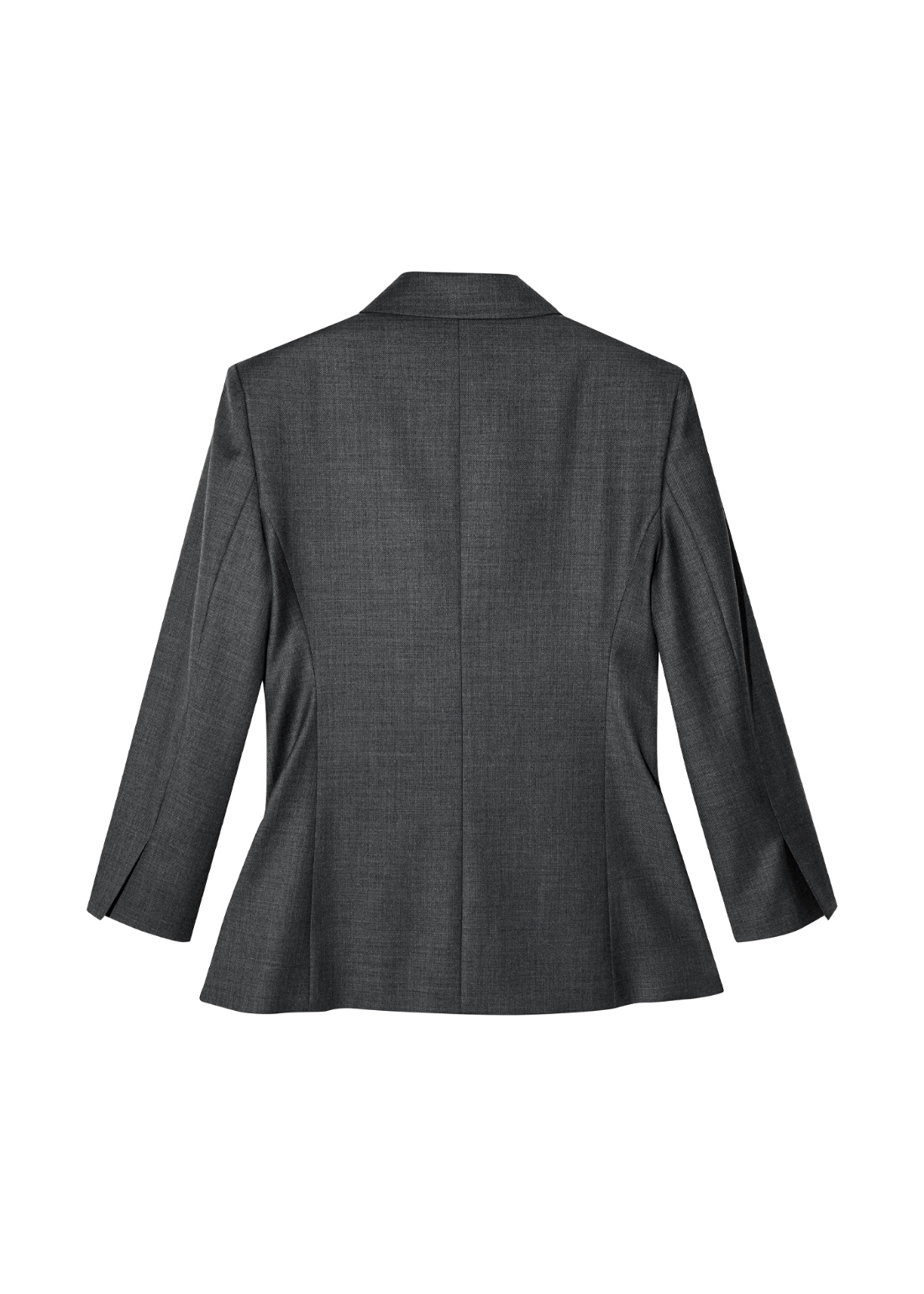 from a luxurious wool, poly, and Tencel blend, the jacket has a subtle sheen and offers a solid structure with a supple drape. The sleekness and warmth of wool, the soft sheen of Tencel, and the durability of poly combine perfectly to maintain a silhouette that stays put even with long-term wear. In addition, the high-quality poly lining provides a comfortable fit.