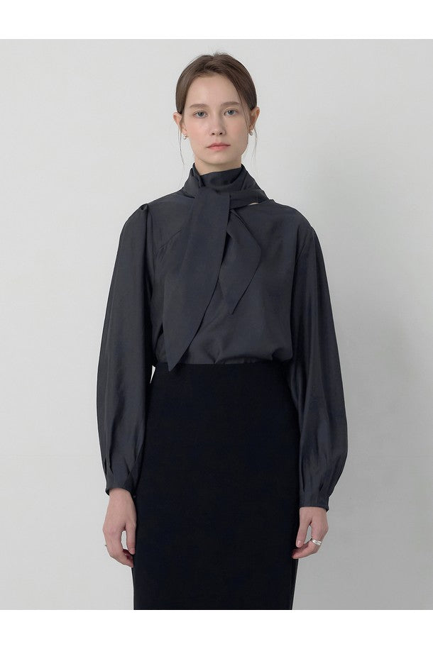 Moment Le Sore Scarf Long Sleeve Blouse Charcoal_FW2025