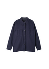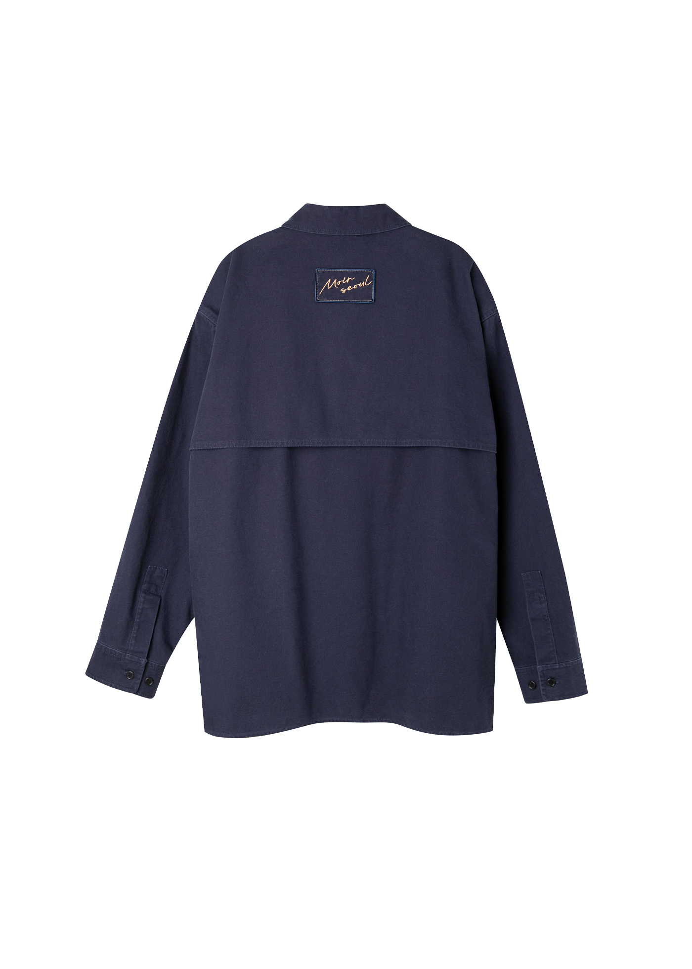 relaxed, oversized silhouette, dropped shoulders, classic collar, front button closure, and two utility pockets combine practicality and style. The MORE Seoul logo embroidered patch on the back accentuates the brand's identity, while hidden button detailing on the side slits allows for versatile styling.