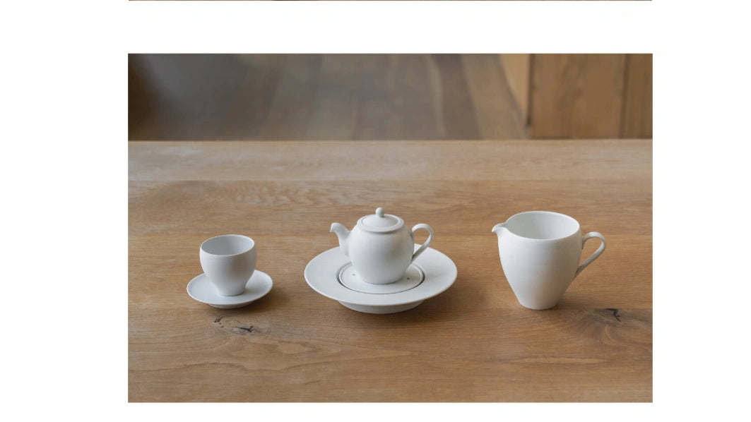 The tea tools with a line of meaninglessness that naturally fit into the space are characterized by a fluffy eggshell-like texture and a semi-gloss.