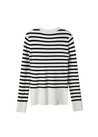 The classic striped pattern and slimming silhouette transcend seasonal boundaries for a sophisticated look. The original striped cardigan top has been updated with a warm, thick yarn perfect for the F/W season, and the front seams have been removed to create an open cardigan design.