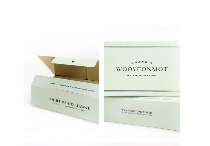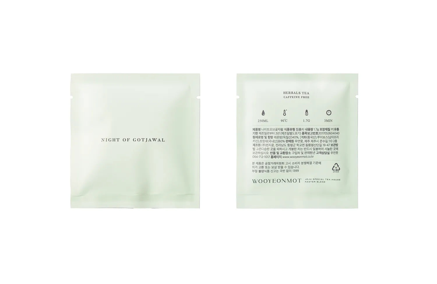 "This tea is inspired by the night of Jeju Gotjawal, where the fairies might visit. Imagine the night where the golden lights of fireflies twinkle. 'Got' means forest and 'Jawal' means bush. It is caffeine-free, so you can enjoy it comfortably anytime. Reed, called Jeju's ginseng, and fragrant golden osmanthus flowers, rooibos, and lemon balm are blended to create a grassy and sweet scent. Feel the warmth that comforts my
