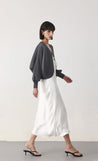 The Pleatsmood Ray Pleats Cardigan in charcoal is a sleek, versatile layering essential designed with modern elegance in mind. Made from lightweight, wrinkle-resistant pleated fabric, it offers both comfort and sophistication. The relaxed open-front silhouette drapes naturally, making it an effortless choice for both casual outfits and more refined styling. The deep charcoal shade provides a softer alternative to black, delivering timeless versatility with a contemporary edge.